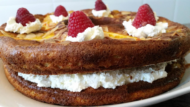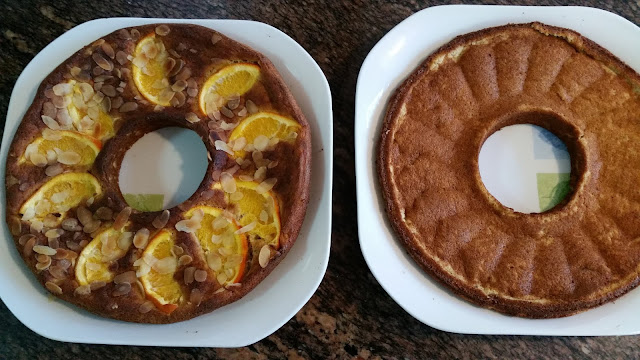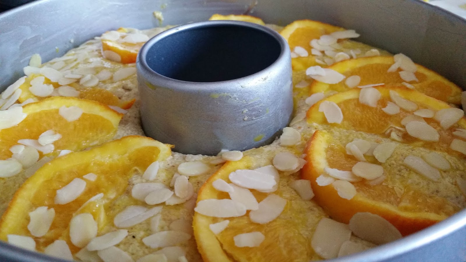 Y toca decorar...ya veis que la masa ha crecido... Lo hacemos con unas rodajas de naranja no muy gruesas .
