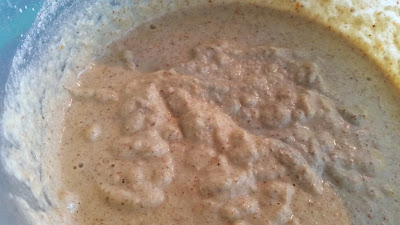 Añadimos después el resto de ingredientes , el agua debe estar caliente, y batimos para que no queden grumos (añadid un "chorrito" del zumo de la naranja)